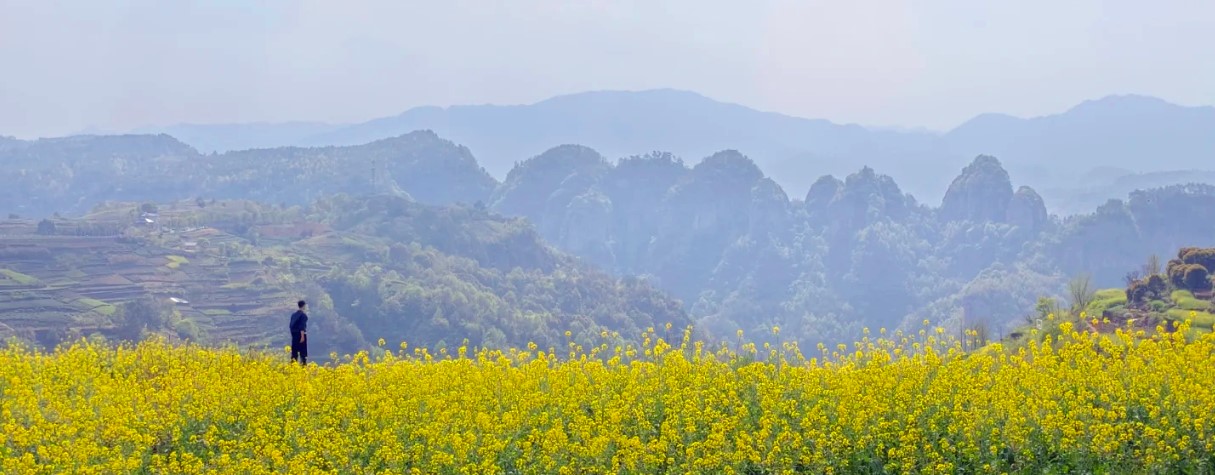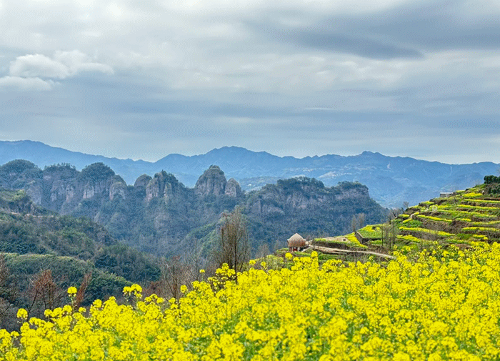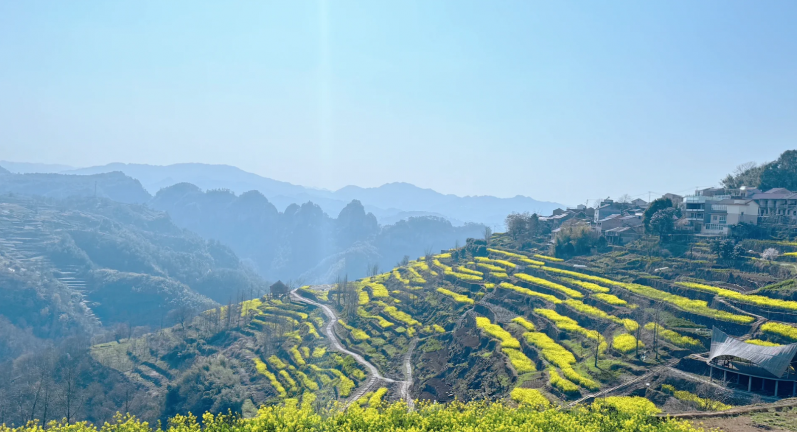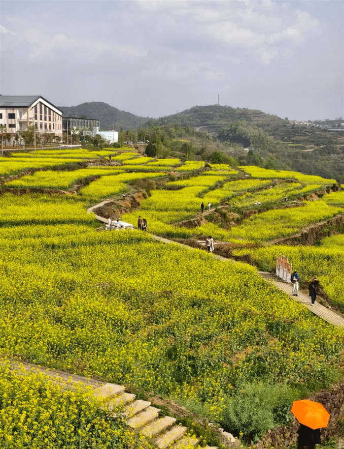 踏春寻花,拥抱春光,明媚的黄色花海与白墙灰瓦相映成趣,层层叠叠的梯田,与山间云海将这里悄然包围,诗情画意尽在其中。