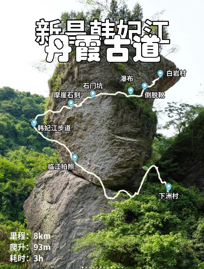 趣趣带领大家走的其中zui精华的一段:白岩村-倒脱靴-石门坑-韩妃江游步道-下洲下村