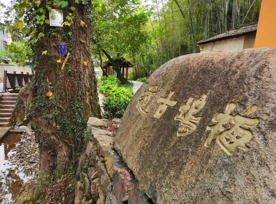 古道沿途梅溪潺潺,竹林之间澄湖浩渺,砌石青苔,庙宇沉思,别有洞天……