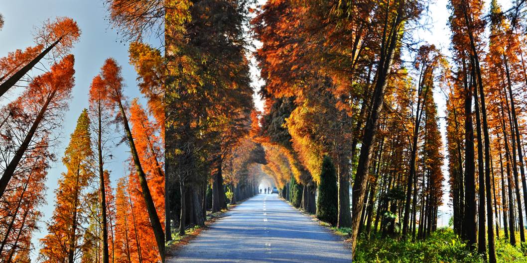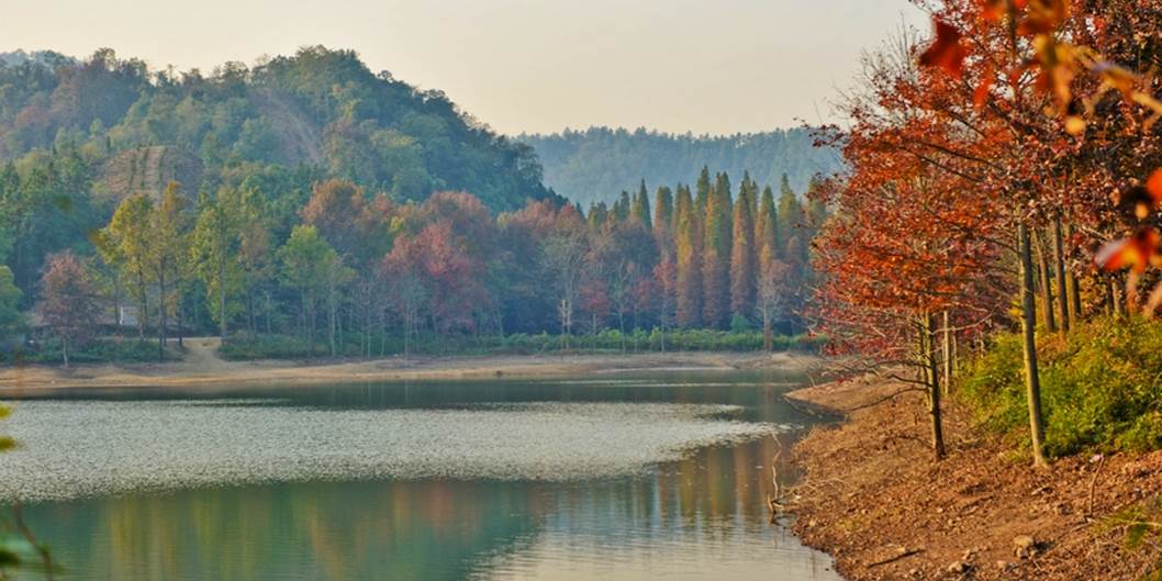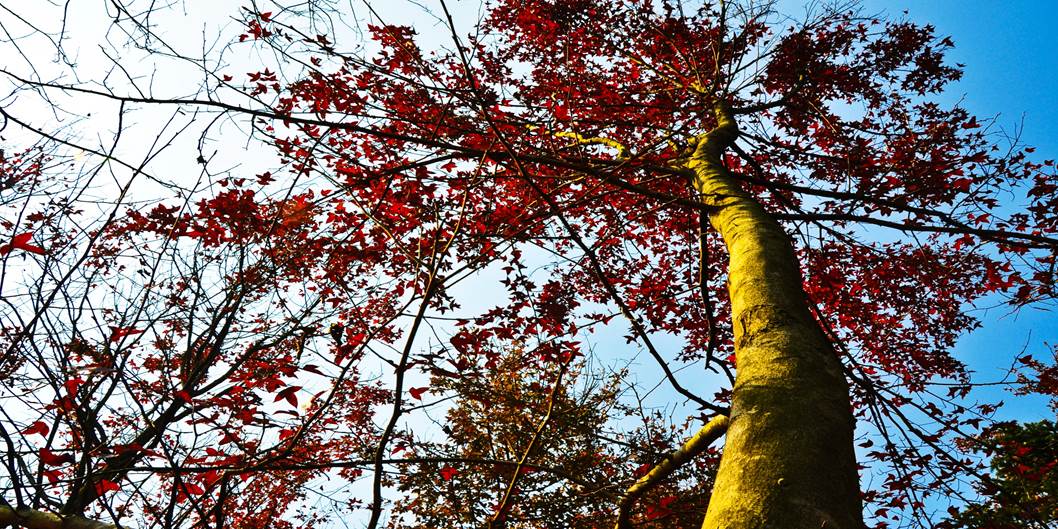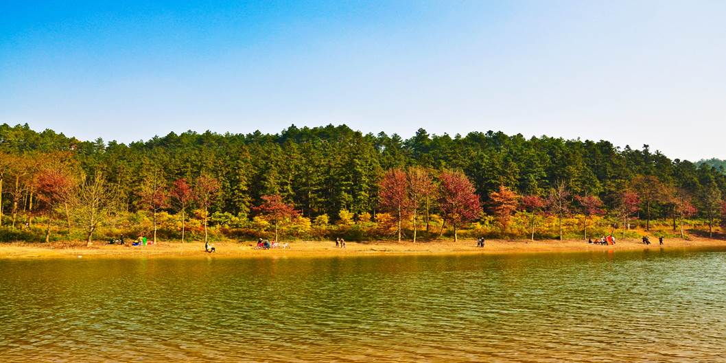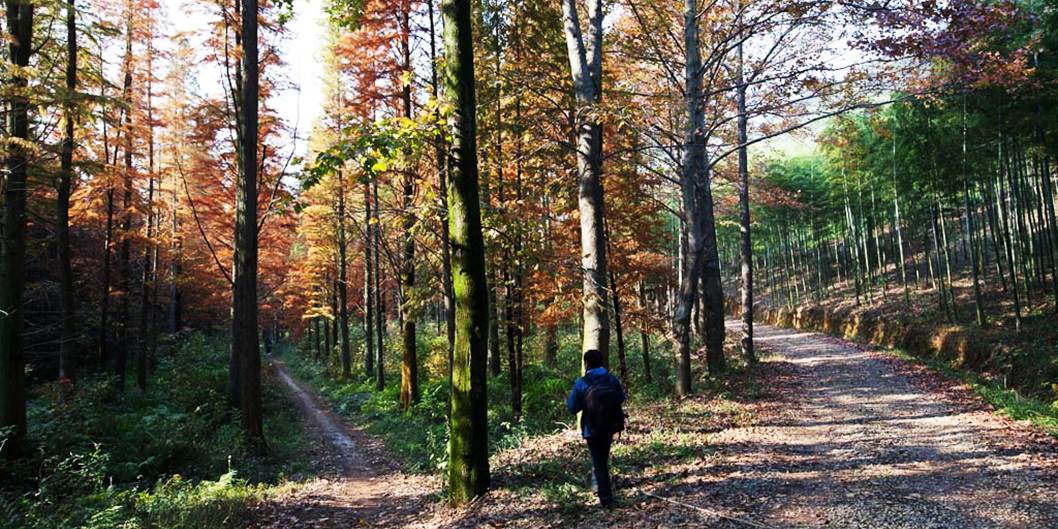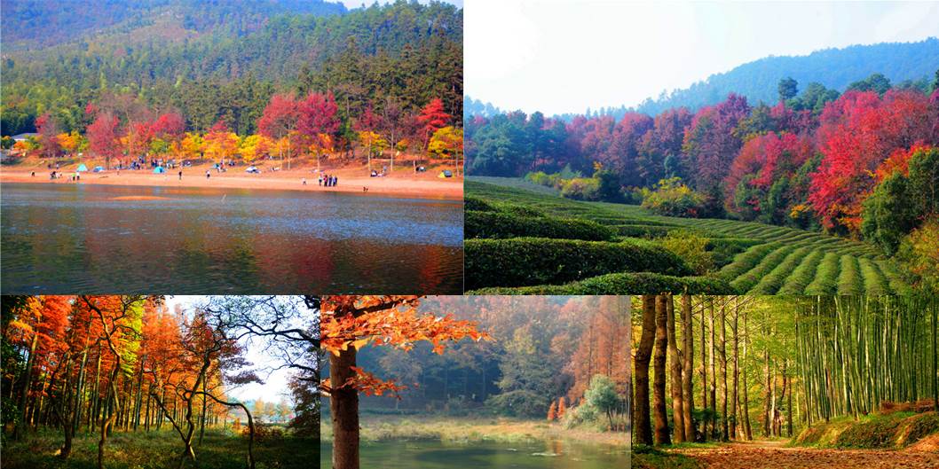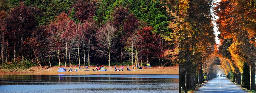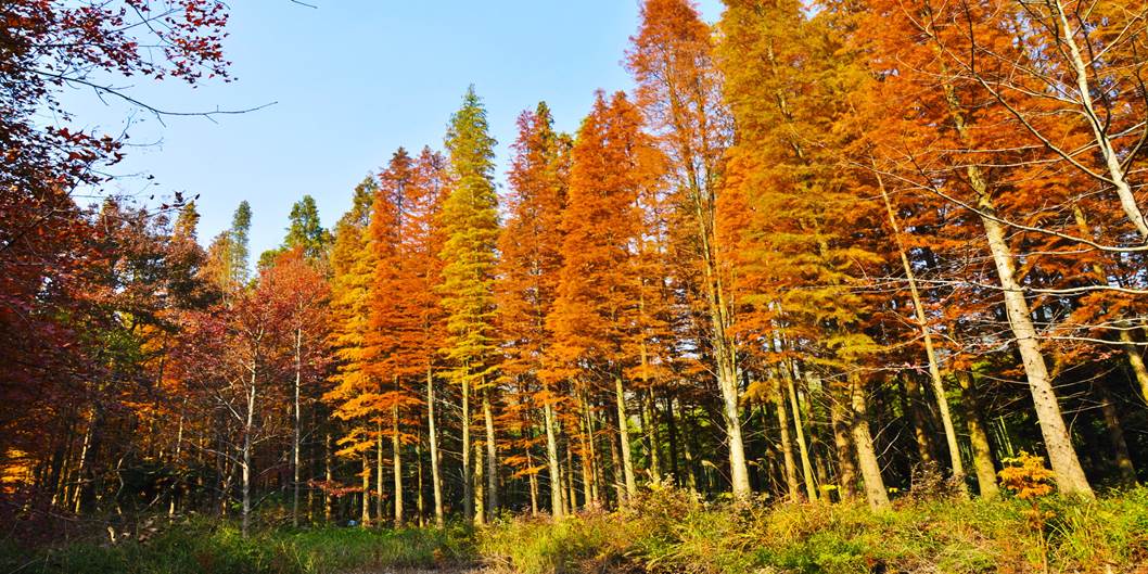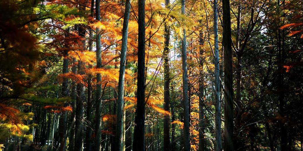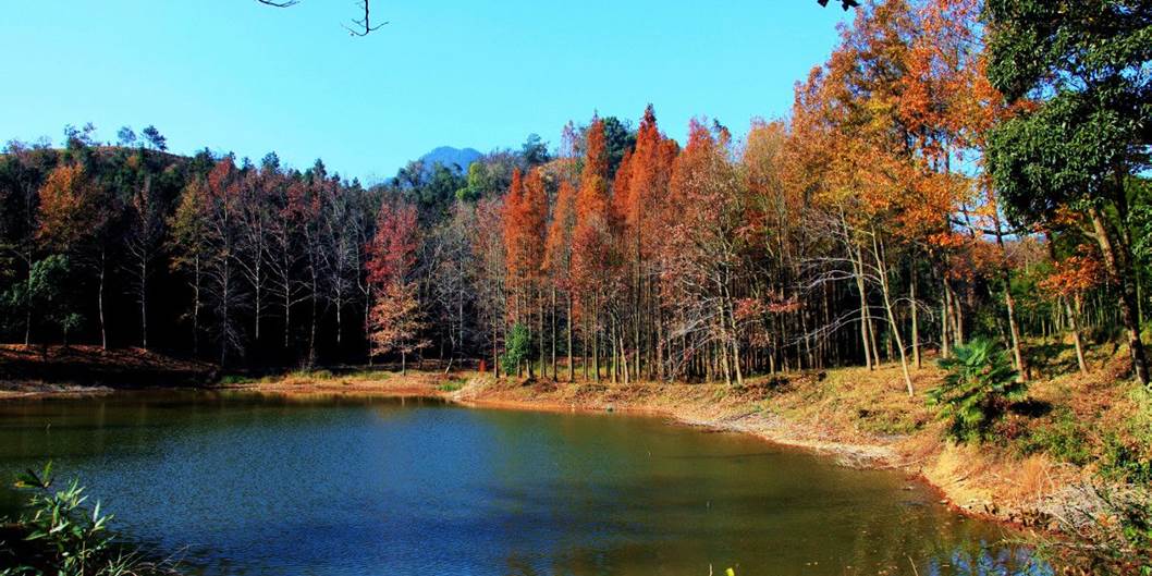 每到秋季,过青翠的竹林,进入长乐林场核心区。猛抬头,看见一路的醉人的枫香红叶迎风飘摇,金色的银杏矗立在池塘边,笔直的锗红的水杉林划出长长的林道,美不胜收。。。。。