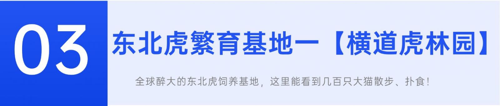 横道河子被誉为“中国虎乡”,东北虎林园占地36万平方米,这里有将近四百多只东北虎,从幼年虎到青壮年成年老虎。近几年相继被携程评为“亚洲100亲子景点榜”、“中国100必打卡景点榜”。