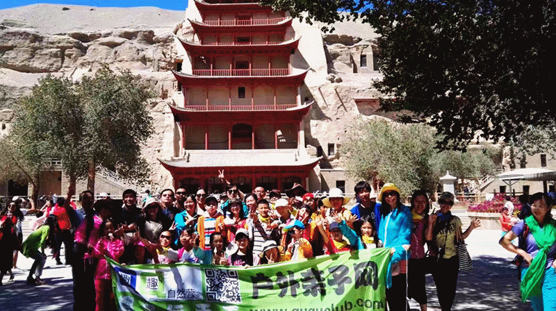 观影完毕后,讲解员带游客到实地参观洞窟。