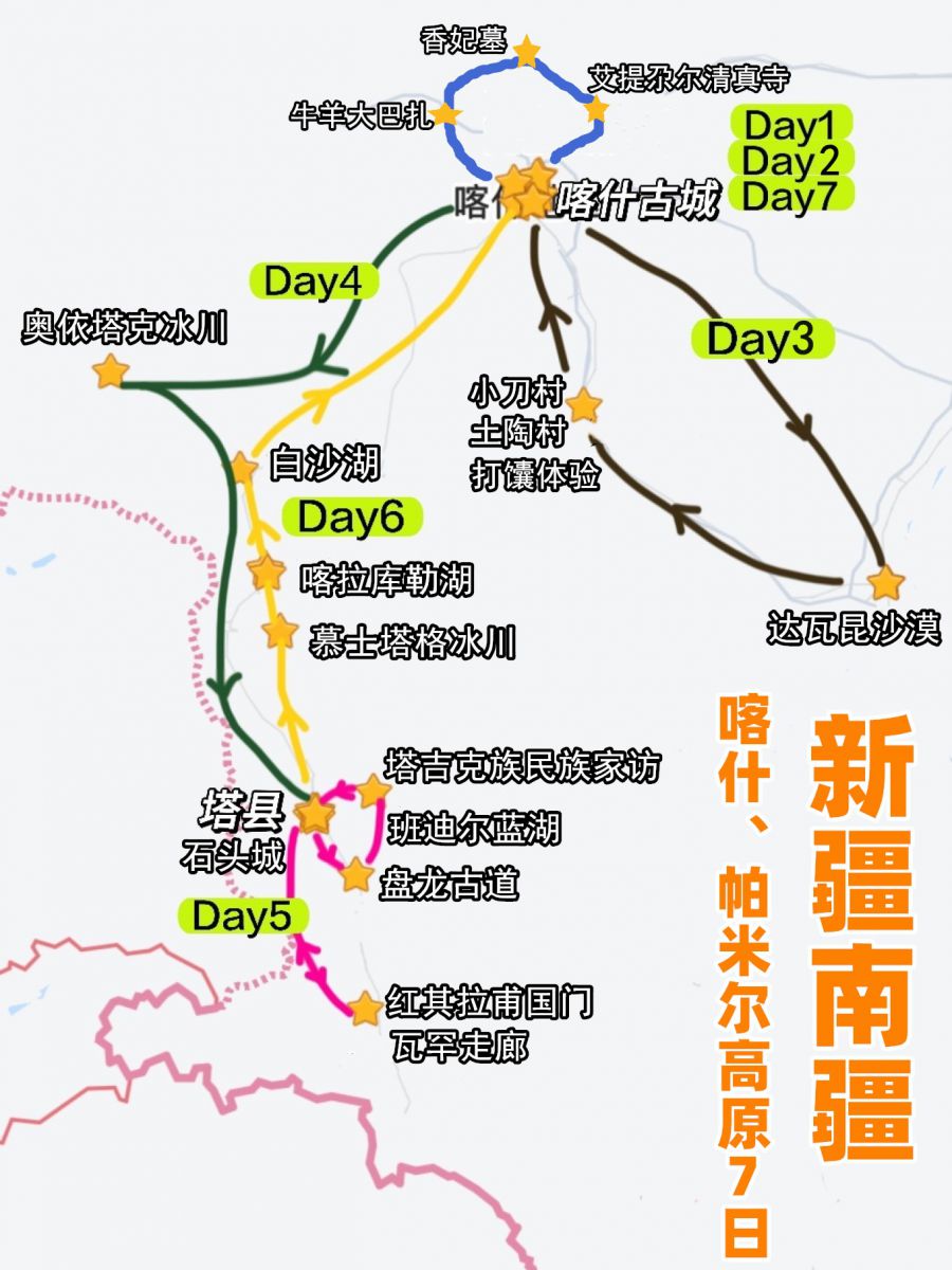一路上把白沙湖、卡拉库里湖、慕士塔格冰川、奥依塔克冰川、石头城、瓦罕走廊、红其拉甫国门、盘龙古道、班迪尔蓝湖等众多景点串联起来,注定这是一条不平凡之路。