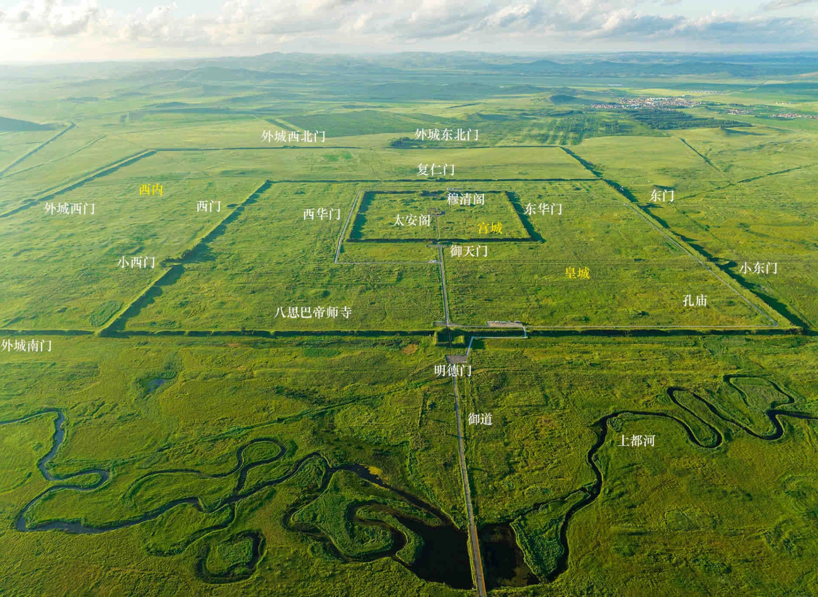 遗址呈宫城 — 皇城 — 外城三重 “回” 字形布局,兼具中原礼制与草原自由,是元大都的规划蓝本。
