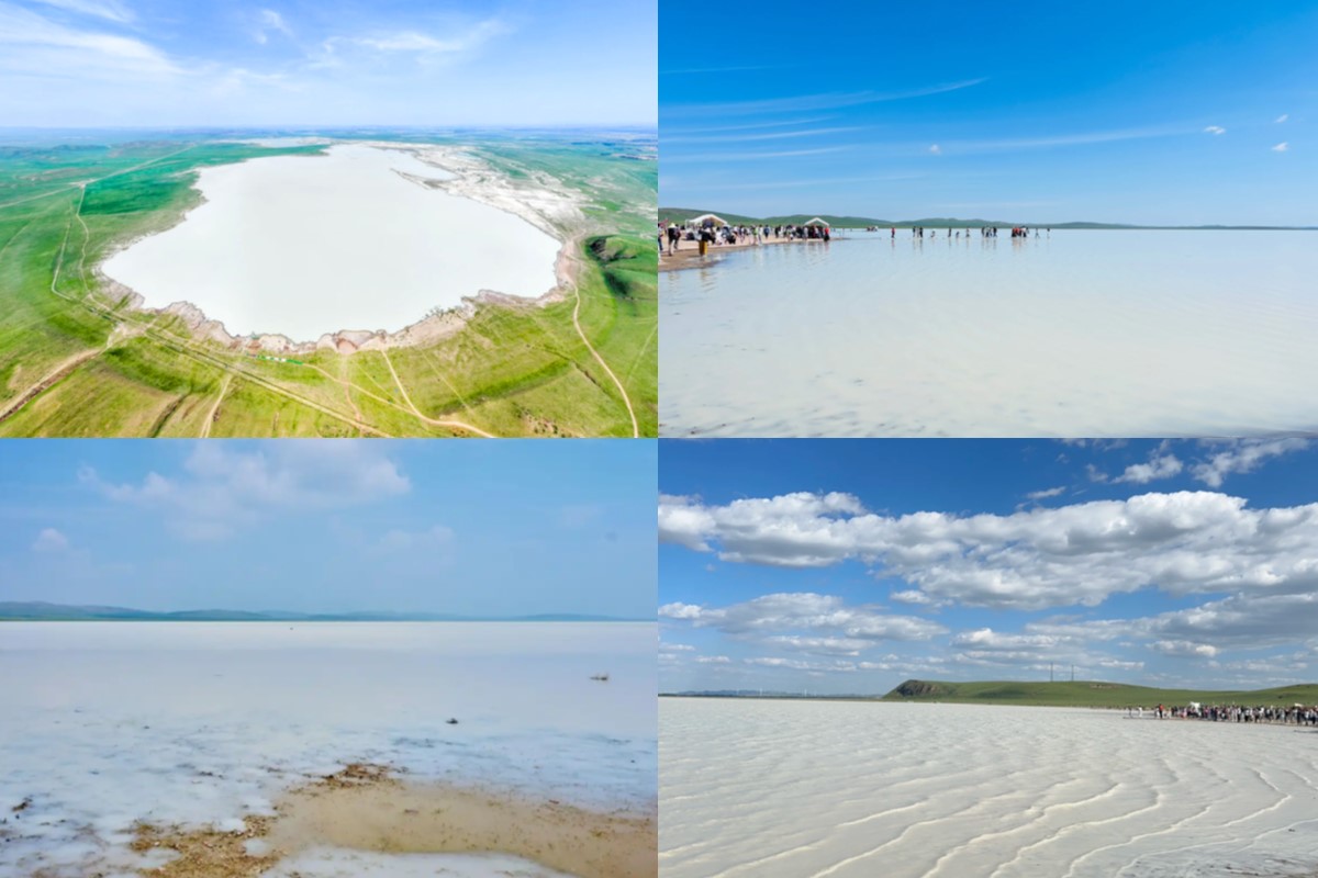 白音查干湖,蒙古语意为“白色的湖”,水源源自滦河支流。据地质专家介绍,湖底沉积的碳酸钙等矿物颗粒经水流或风力搅动后悬浮于水中,阳光散射下形成温润的奶白色,因此被称之为“牛奶湖”。