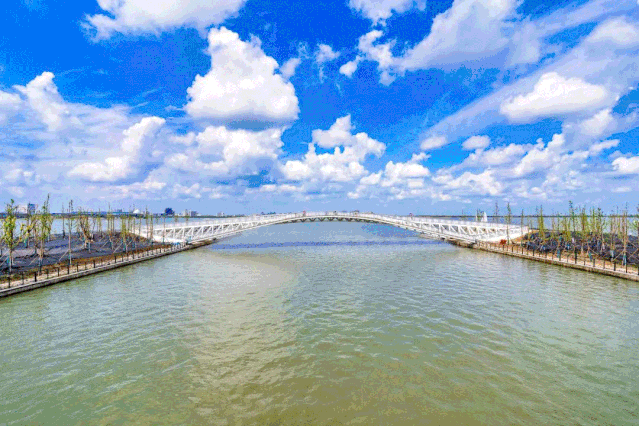 沿着环湖一路骑行,长度约9公里,沿途欣赏滴水湖美景,安静的道路能让市民静心骑行。新晋网红的环湖景观带七座桥也是骑行打卡的好去处。每座桥与所在的港口名采用相同“色系”,脚踏单车骑过,仿佛越过一座座彩虹。