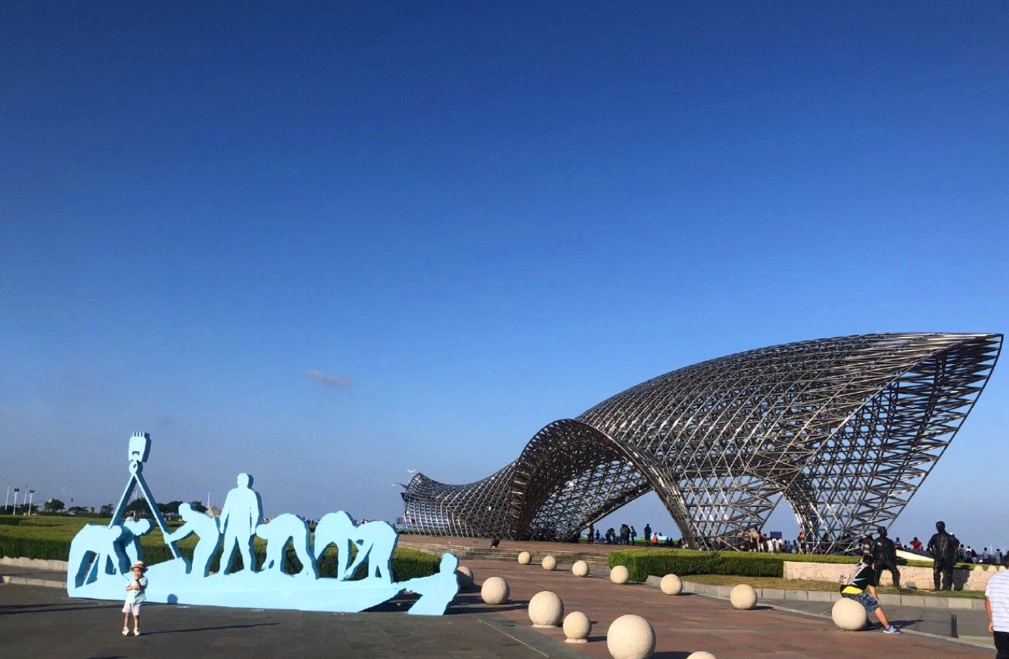 单论面积,南汇嘴观海公园其实很迷你,整个公园的标志就是一枚由不锈钢管构成的双层网架的“司南”,司南也就是世界上最早的指南针,藉衬着开阔的景色,一派爽朗。