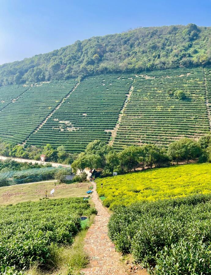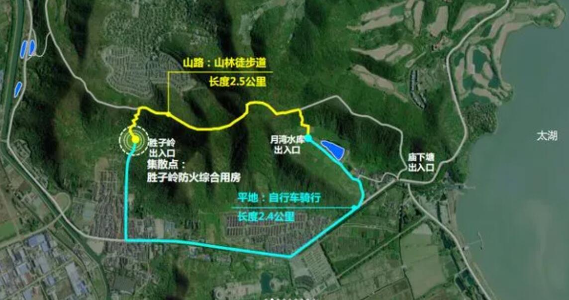 山顶风景壮丽,视野开阔,万项太湖、马山尽收眼底。一路会路过竹林、山脊、茶园、水库,走走歇歇,惬意自在。