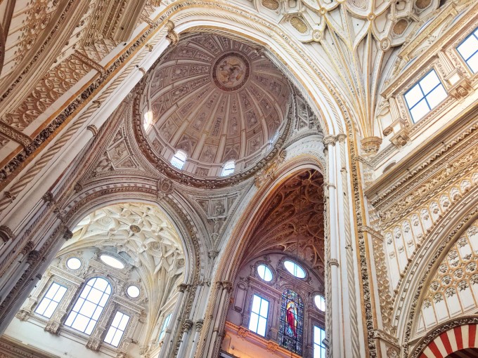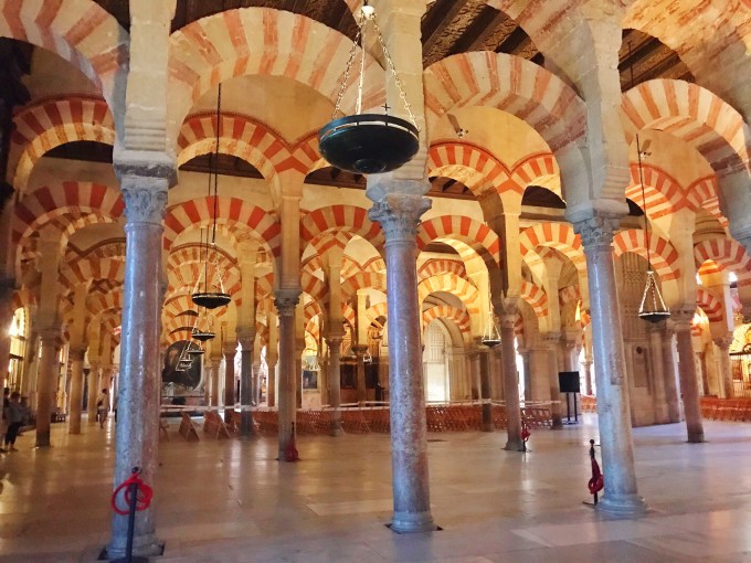 装饰极为豪华的礼拜正殿,由斑岩、碧玉和各种颜色的 大理石石柱构筑而成,望不到尽头的红白相间马蹄形双层拱券最为震撼。