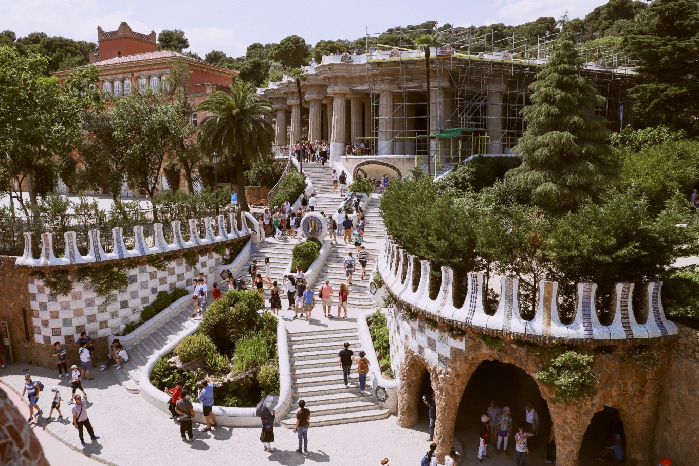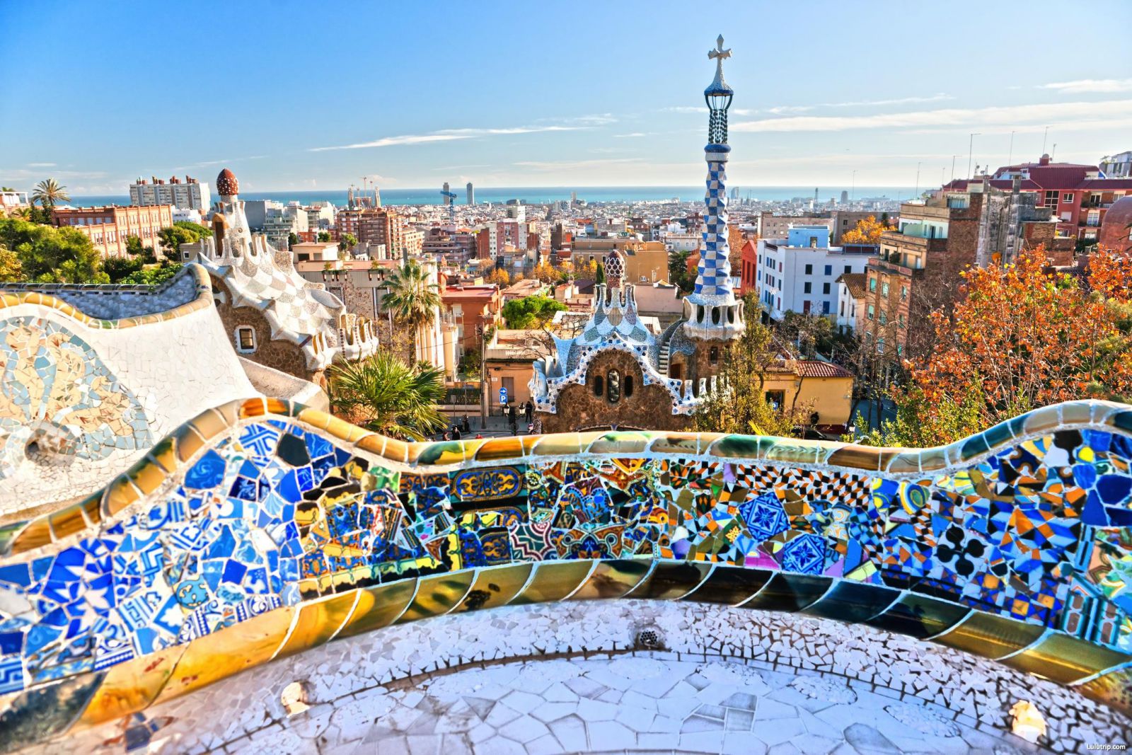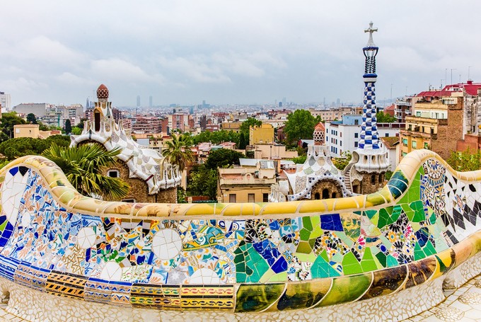 除了这两座喷泉之外,公园内的百柱厅和圆形大广场上的世界第一长椅也是非常值得细细品味的高迪作品。登顶公园,还可以俯瞰巴塞罗那远景。