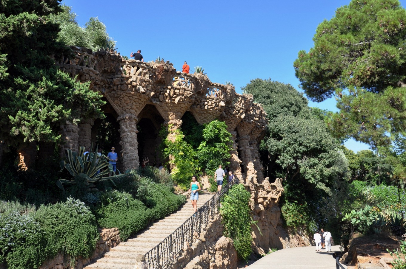 园外最精彩的莫过于三座不同的高架桥,高迪的高架桥与我们在城市里所见到的完全是两码事。