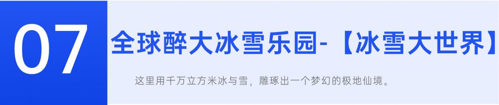 冰雪大世界凭借哈尔滨的独特冰雪优势,推出的集艺术性、观赏性、参与性、娱乐性于一体的大型冰雪艺术精品工程,被誉为恢宏壮阔的“冰雪史诗画卷”。