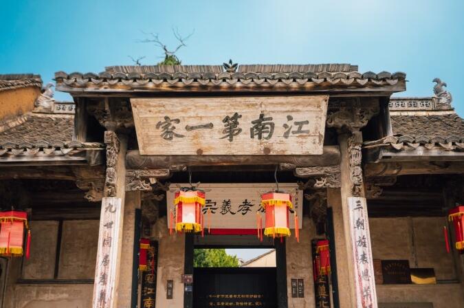 江南第一家为郑氏宗祠,有遗址二十余处。始建于元初,占地约六千六百平方米,结构宏敞,风格古朴。