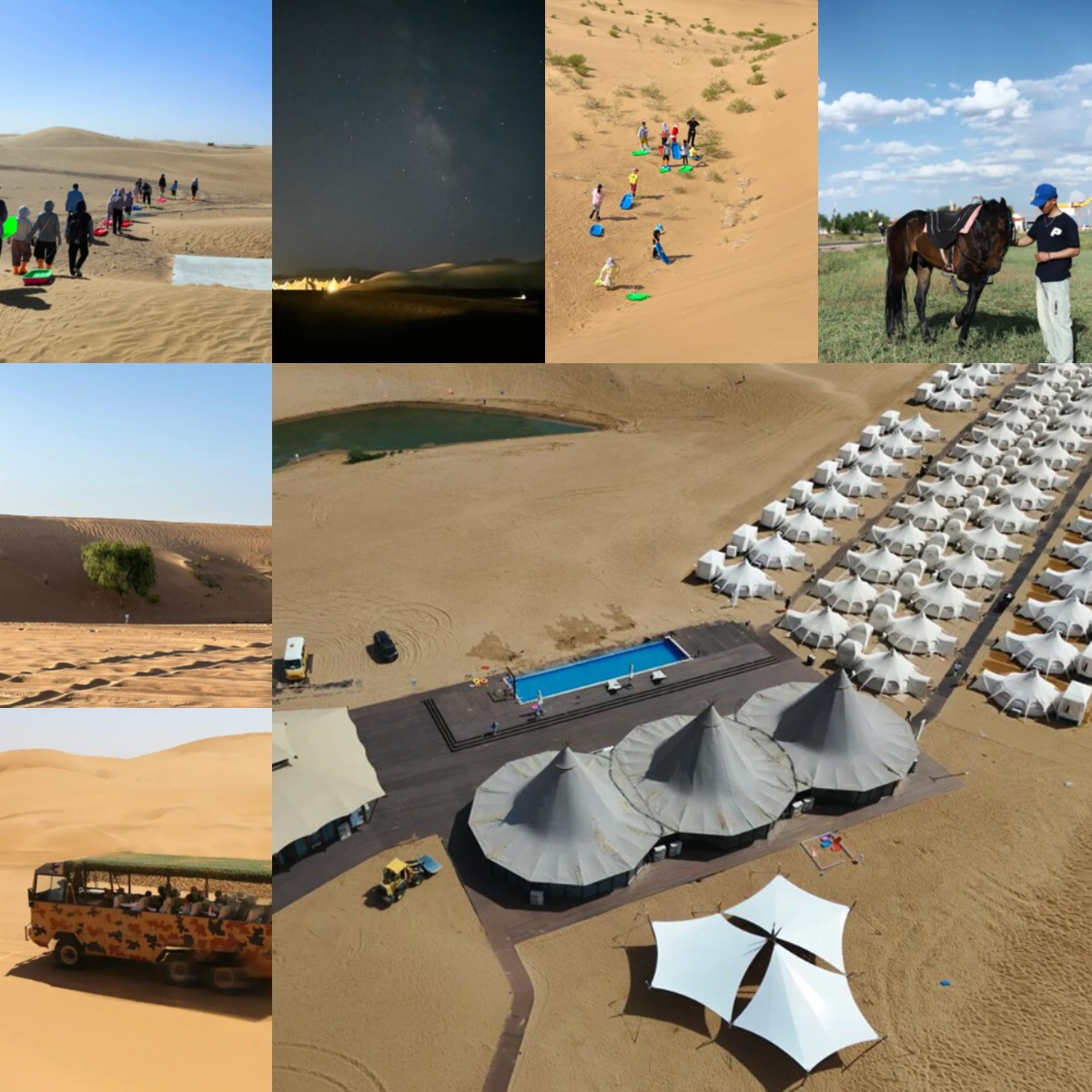 在这里,可以体验丰富多彩的沙漠活动,骑骆驼、滑沙、卡丁车、四轮摩托、冲浪车……