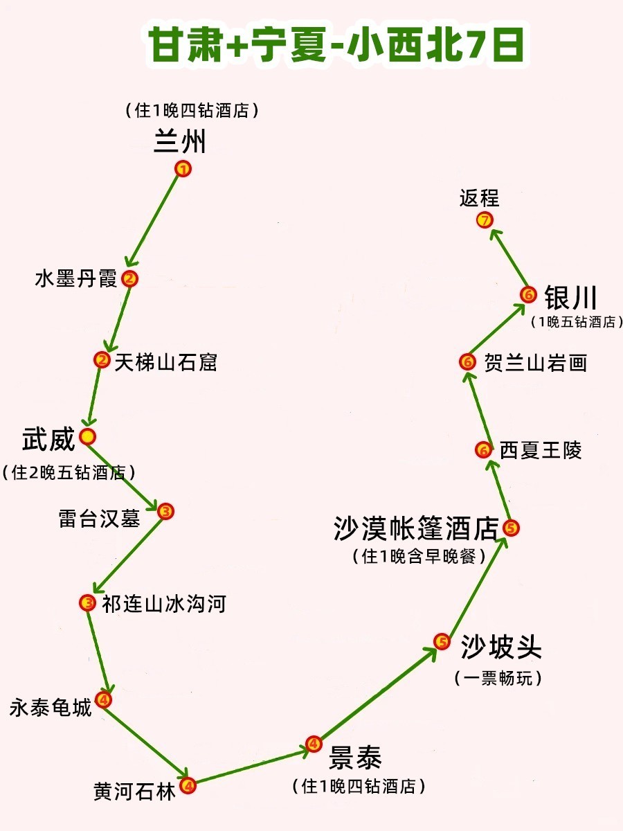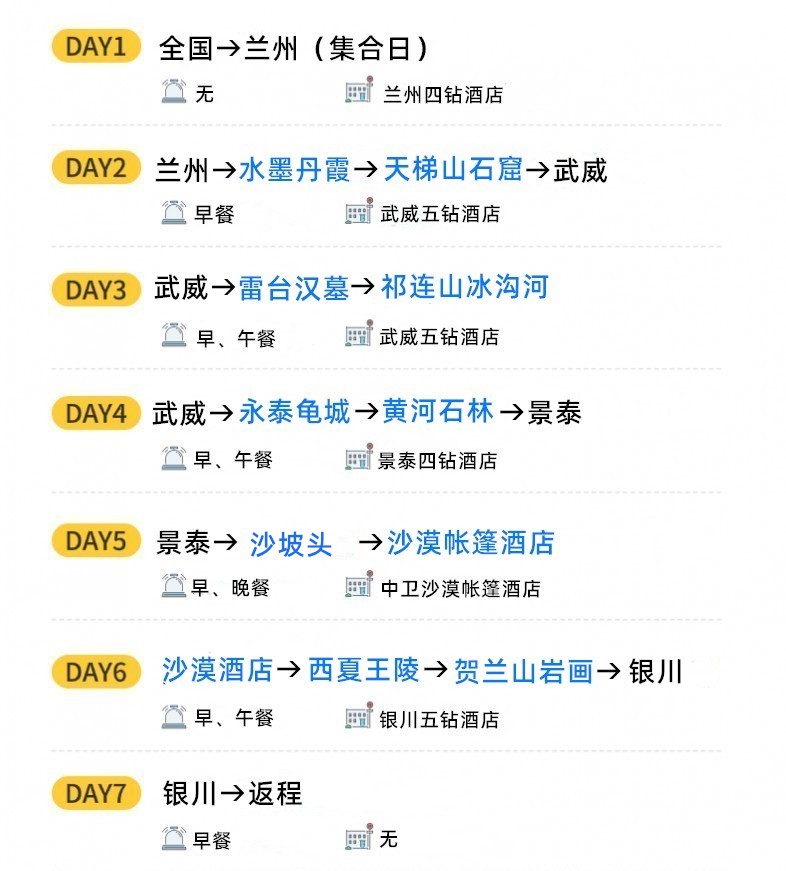 好住:2晚武威五钻酒店、1晚兰州四钻酒店、1晚景泰四钻酒店