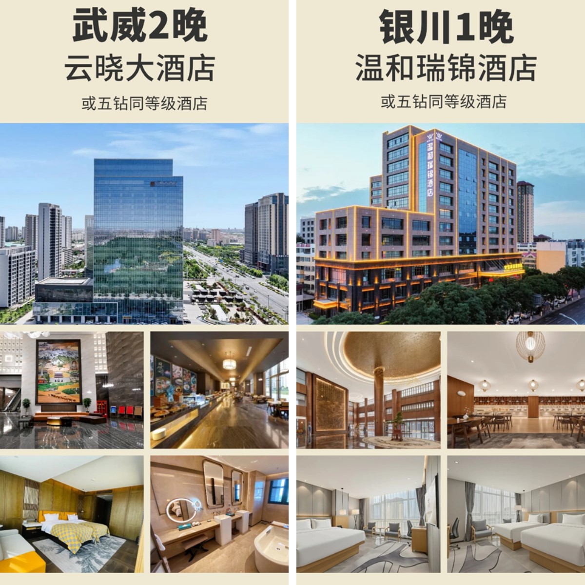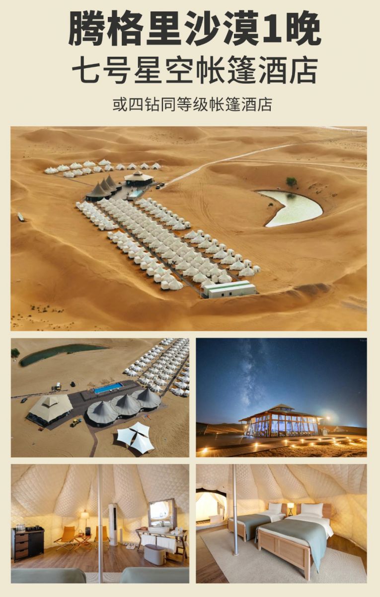 好住:银川1晚五钻酒店、1晚沙漠帐篷酒店